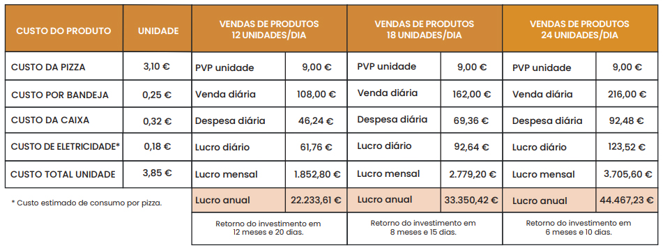 • Inclui a entrada em funcionamento: Nós ajudamo-lo a instalar a máquina, certificando-nos de que tudo funciona na perfeição. Seja dono da sua própria máquina de pizzas e comece a obter receitas desde o primeiro dia! POS não incluído.